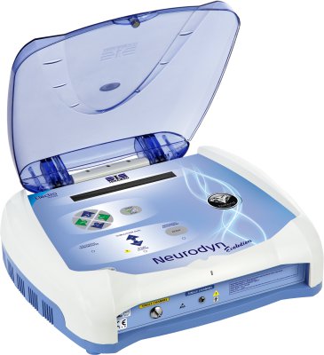 Two-channel device for medio-frequency therapeutically currencies with computer control and monitoring of the parameters of the treatment procedures and possibilities for: four-pole interference; two-